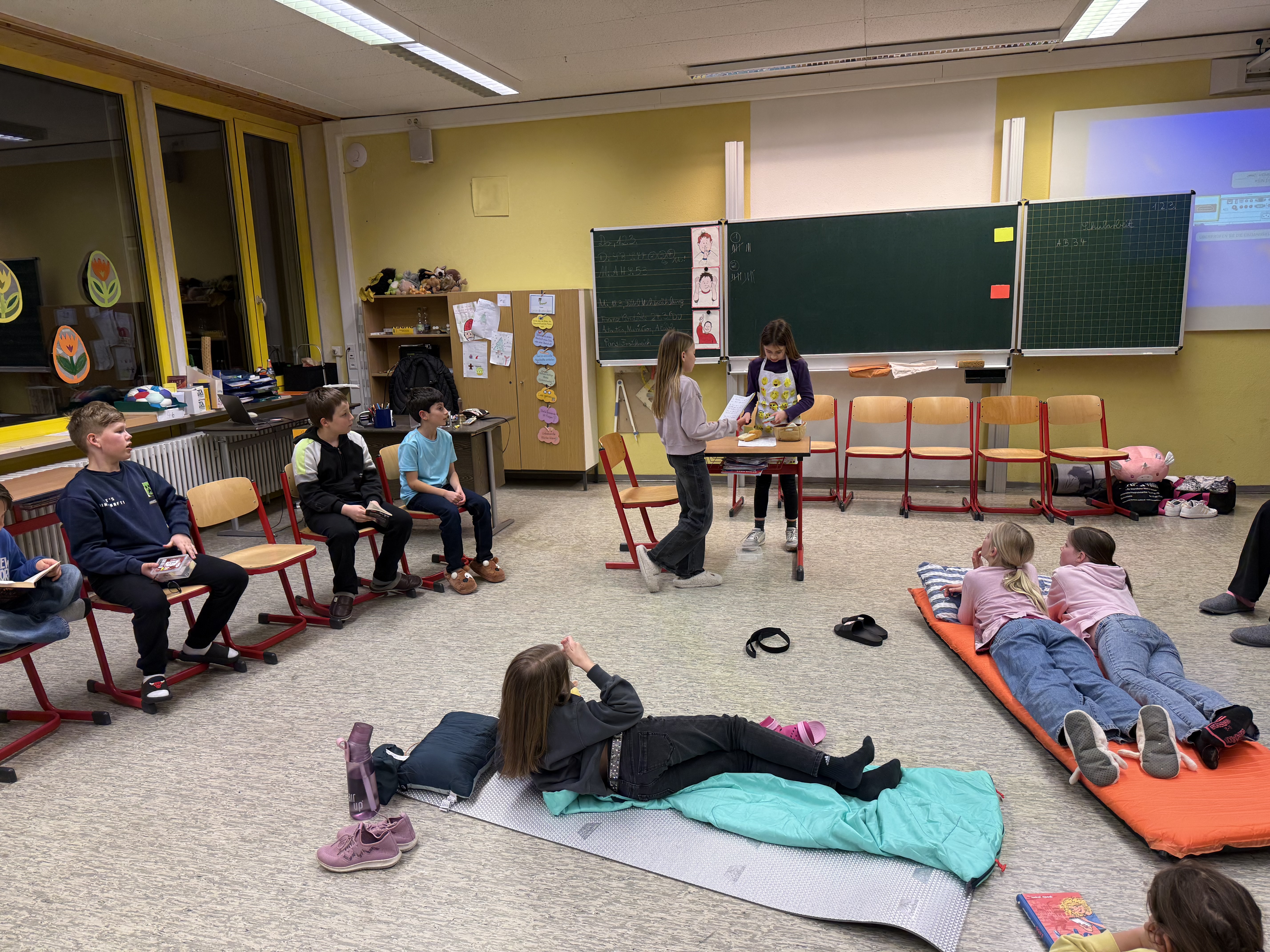 Die Klasse 4c durfte in der Schule übernachten. Eine Lesenacht stand auf dem Programm.