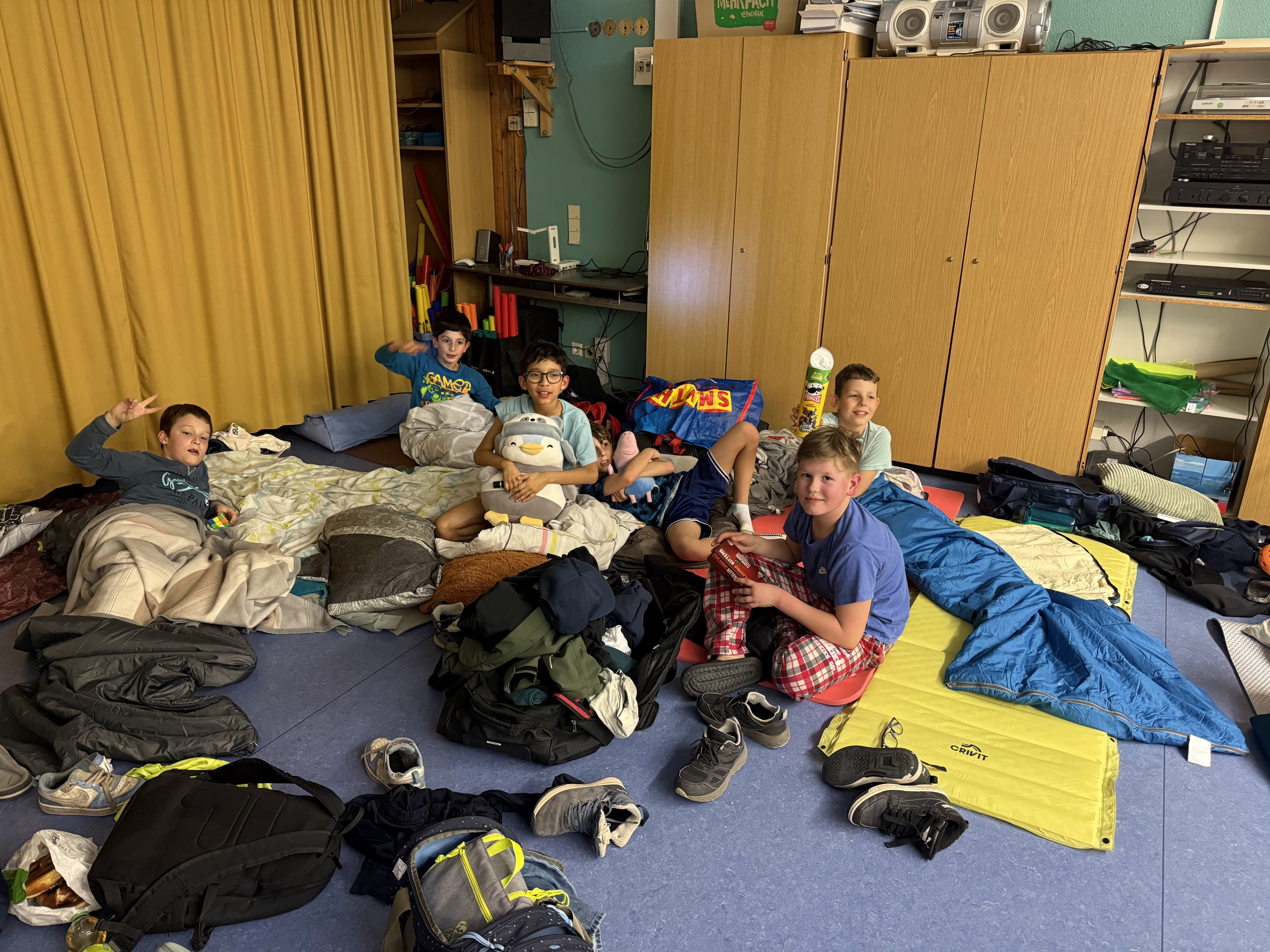 Um 22.00 Uhr gabs noch eine Gute- Nacht Geschichte und dann kuschelten sich alle in ihre Schlafsäcke.