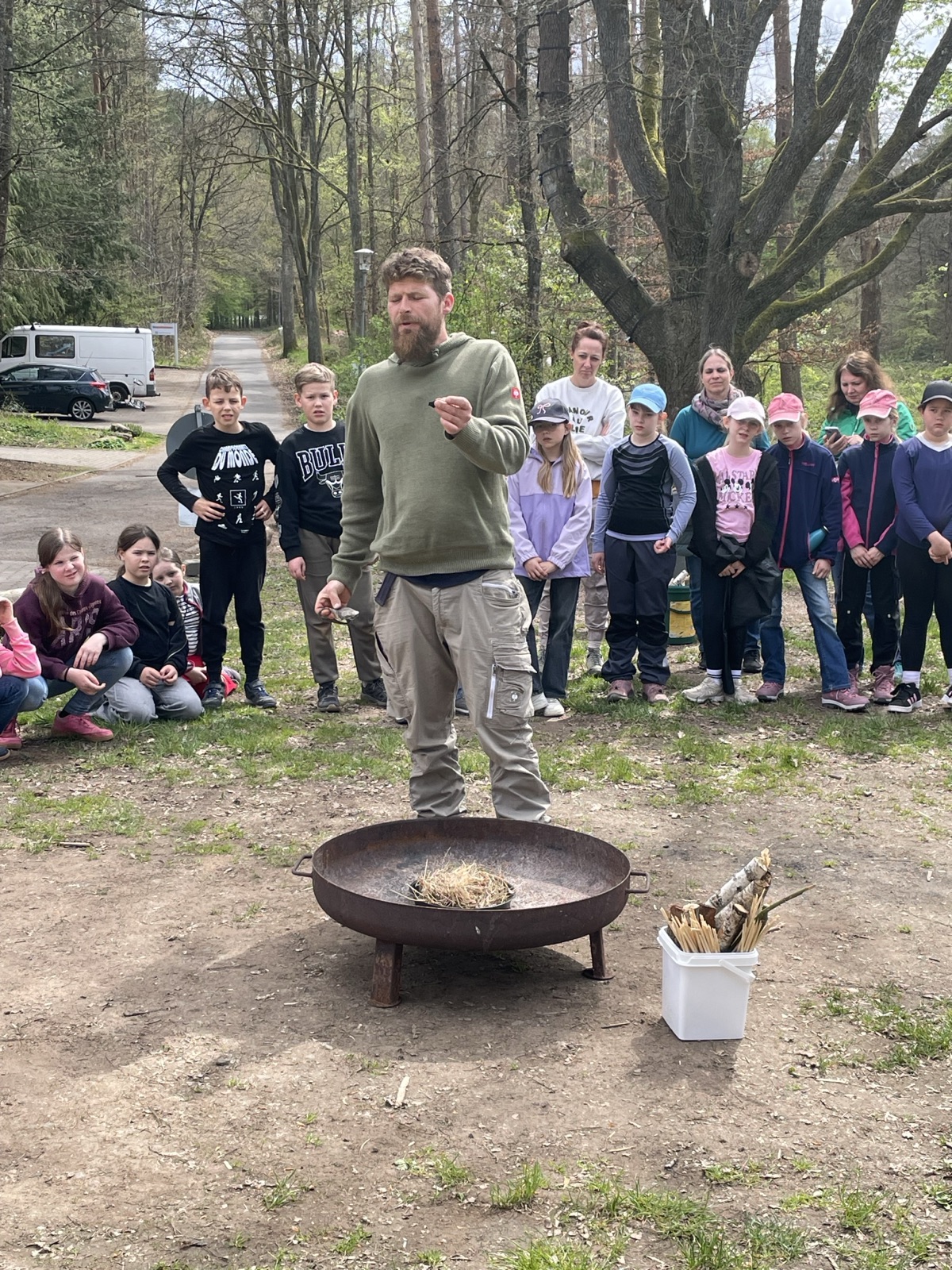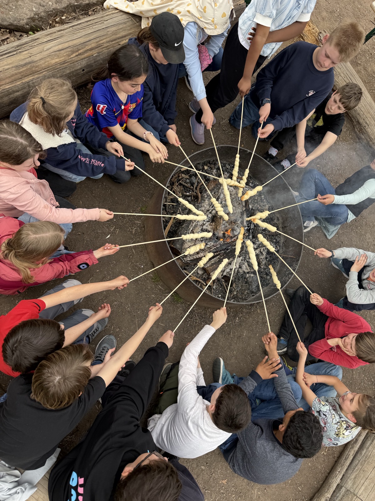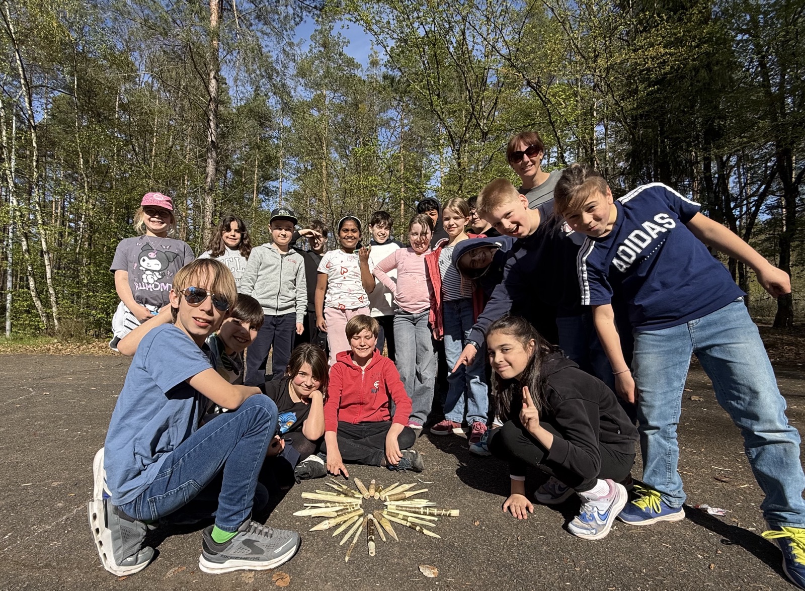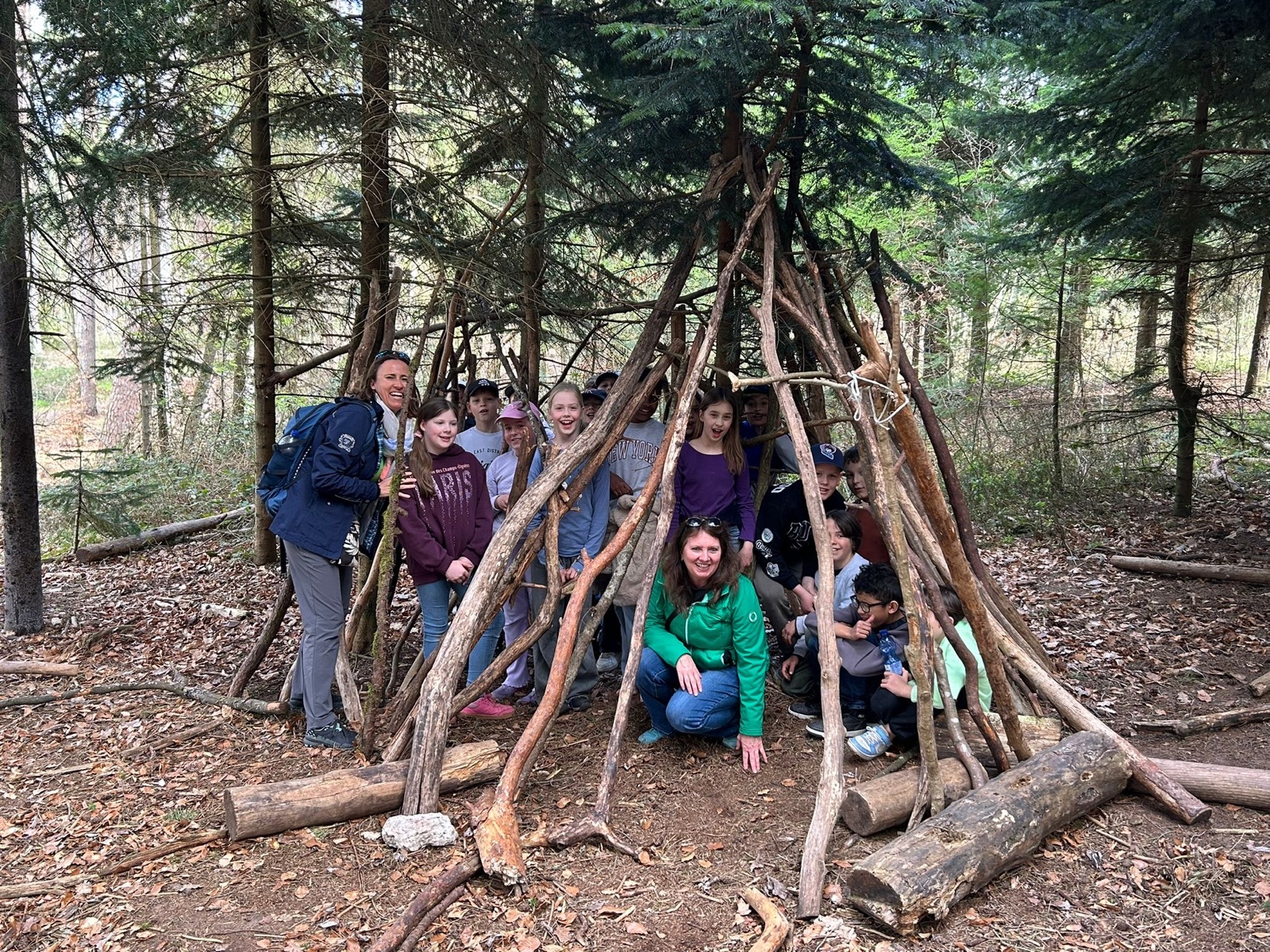 Es gab drei TeamleiterInnen, mit denen wir schnitzten, selber Feuer machten und ein Tippi im Wald bauten.
