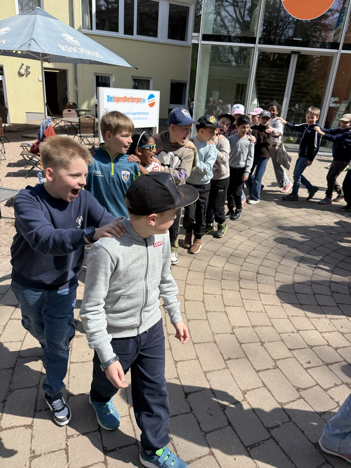 Nach dem Ankommen konnten wir die Zimmer noch nicht gleich beziehen und spielten bei schönstem Wetter noch draußen auf dem Gelände.